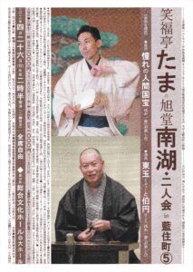 上方講談ニューウェーヴ 旭堂南湖と高学歴落語家 笑福亭たまが、今年も藍住町に降臨!