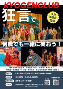 初めての方歓迎!狂言体験会 演芸・伝統芸能徳島市内 徳島県出身の狂言師・河野佑紀と楽しく声を出しませんか? 幼稚園~年齢制限ナシ!習い事未経験・初心者大歓迎の体験会を開催! 関連URL:https://forms.gle/yzavYsPZPwar1jgEA パンフレットはこちら 開催日 2026.05.07(木) 開催時間 1部 16:00~17:30 2部 18:00~19:30 開催会場 あわぎんホール和室1 住所:徳島県徳島市藍場町2丁目14番地 参加料 一般 2,000円 子供 1,000円 申し込み方法 https://forms.gle/yzavYsPZPwar1jgEA お問い合わせ わろてな!狂言クラブ徳島 warotenakyogen@gmail.com
